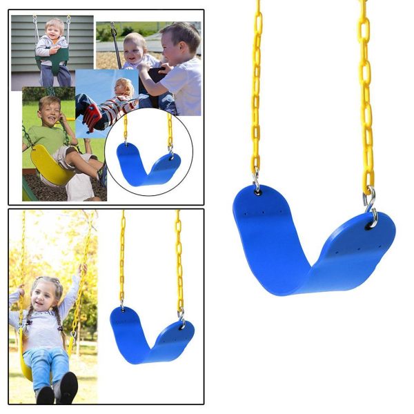 Équipé de chaînes solides de 66 pouces (≈168 cm), ce siège assure une installation stable et sécurisée sur la majorité des structures standards. Son design simple et ergonomique garantit un confort optimal pour les enfants lors de chaque utilisation.